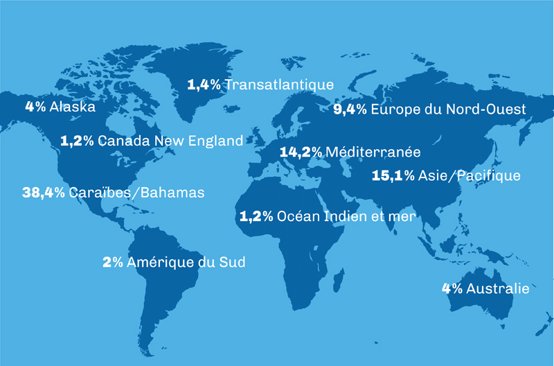 La flotte de navires de l’industrie est composée de près de 300 navires provenant d’une soixantaine de compagnies de croisières.